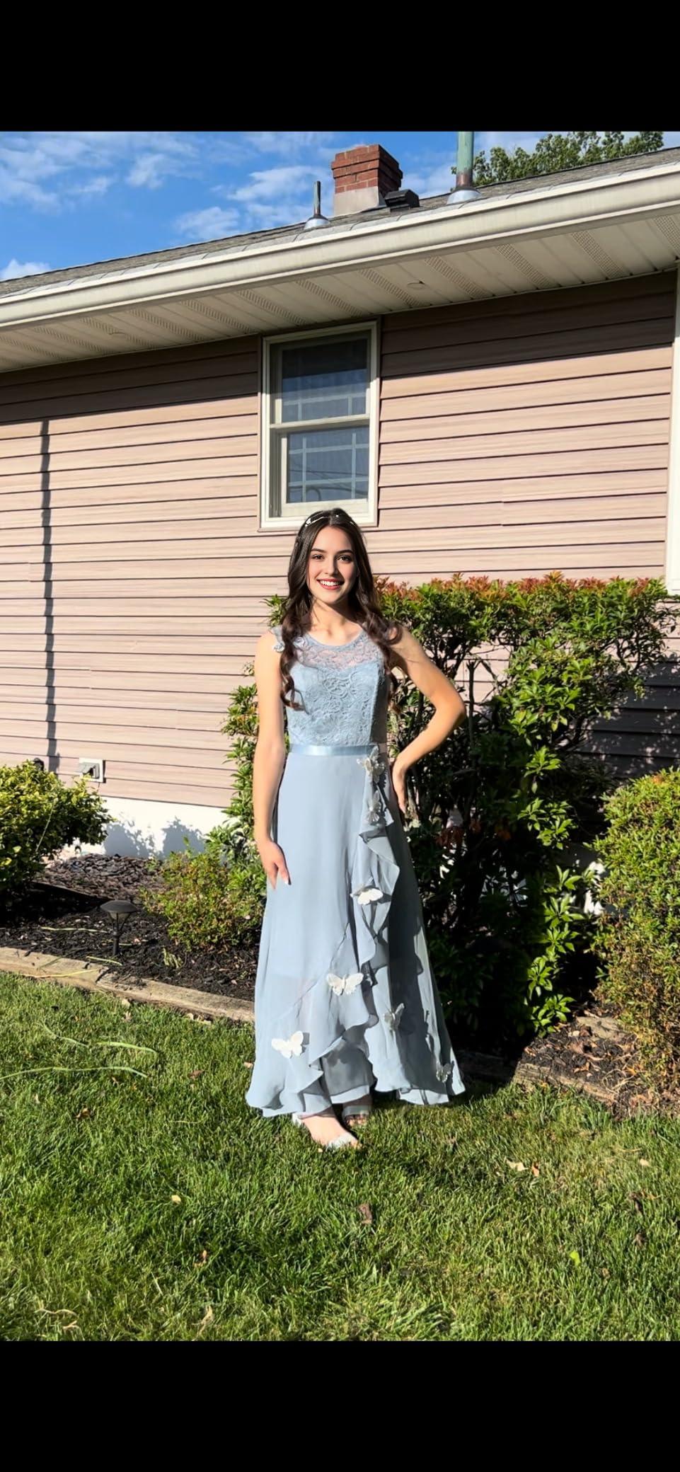 Elegant A-Line Round Neck Flutter-Sleeve Zipper-Back Floor-Length Bridesmaid Dresses