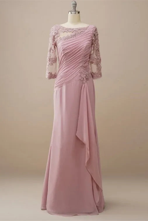 Elegant A-Line Illusion Neck Charming Mermaid Asymmetric Neck Lace Sleeve Ruched Back Floor-Length Mother Of The Bride DressesSleeve V-Back Floor-Length Mother Of The Bride Dresses(副本)