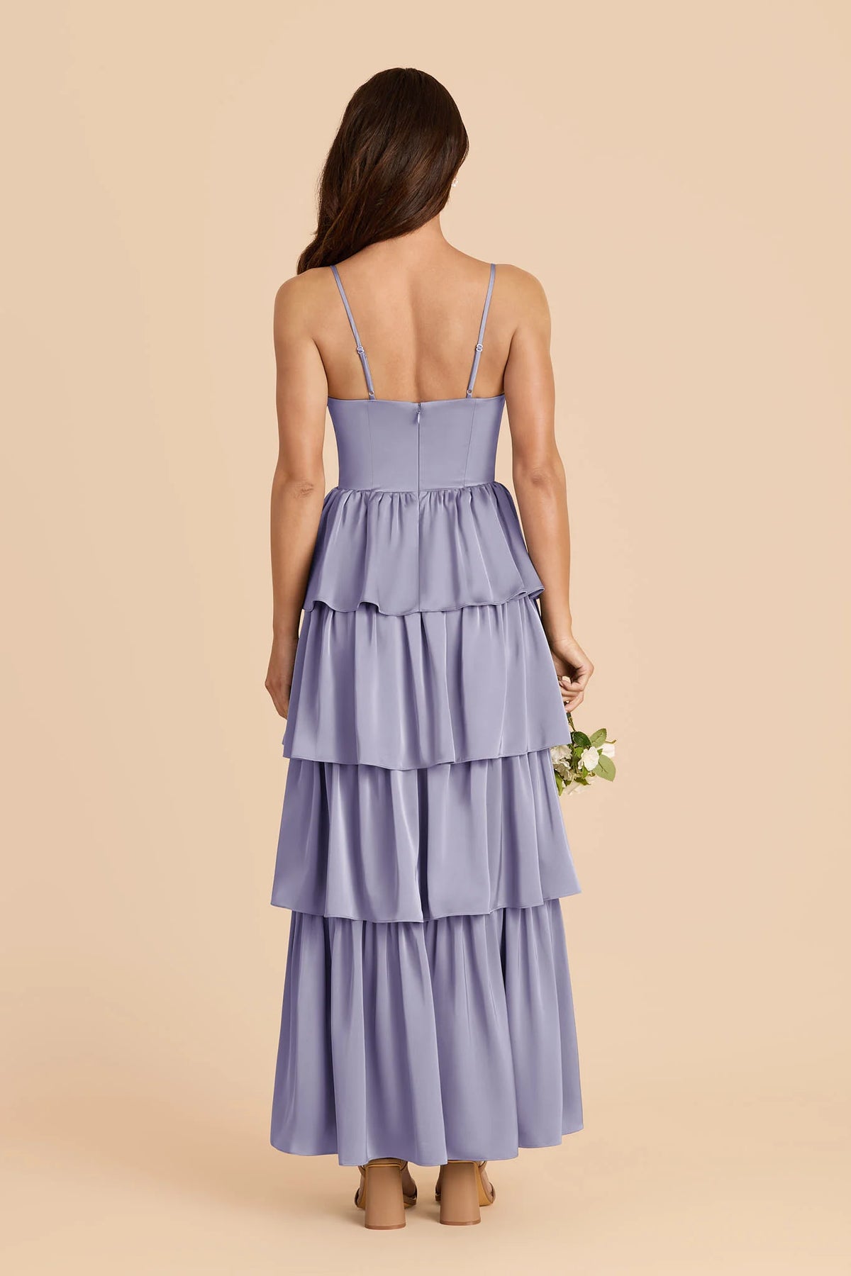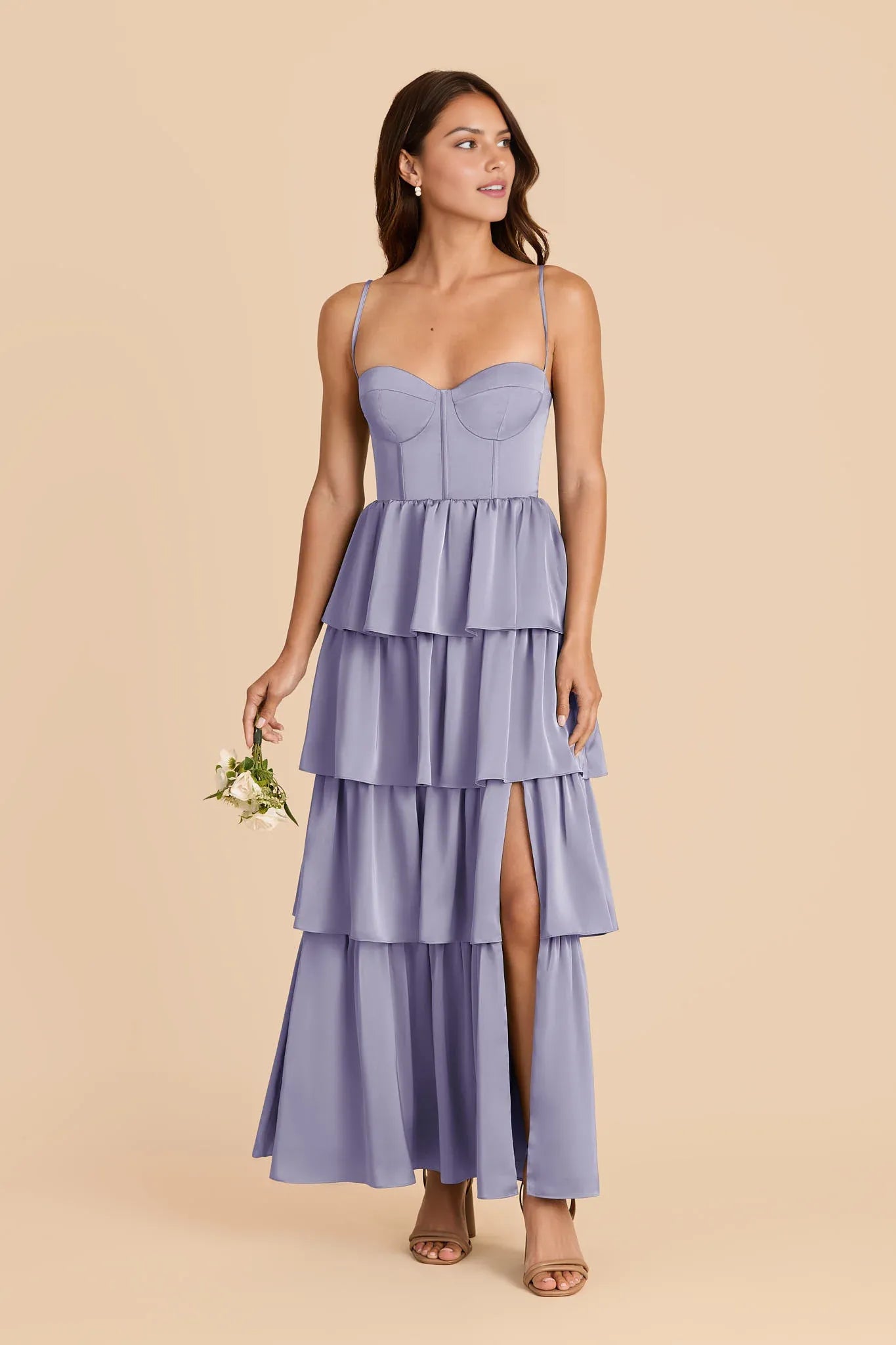 Elegant Dusty Lilac A-Line Sweetheart Neckline Sleeveless Tiered Ruffle Satin Back Zip Ankle length Prom Dresses with Adjustable Straps - US 2 / UK 6 / EU 32