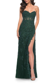 Elegant Mermaid Strapless Sleeveless Floral Embroidered Lace Up Tulle Floor -Length Prom Dress Lace Edge Slit