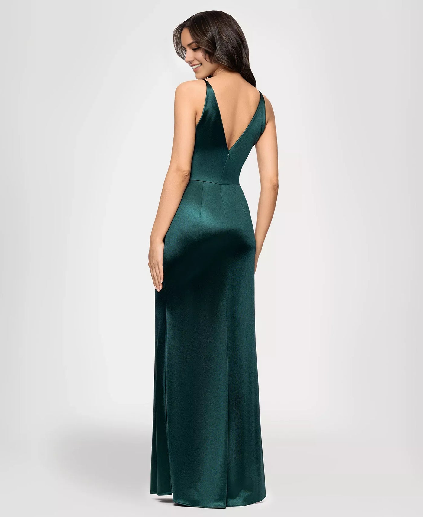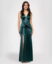 Elegant Mermaid V Neck Sleeveless Back Zip Satin Ruffled Bodice Slit Floor-Length Prom Dresses - US 2 / UK 6 / EU 32