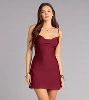 This wine red satin short back to school dress features a heart-shaped collar and thin shoulder strap design, with a slim fit that fits the body. The back is simple and easy to put on and take off, and the mini length is suitable for back to school dances, parties, and other occasions. The satin material has a high-end luster, showing off its elegance and beauty.