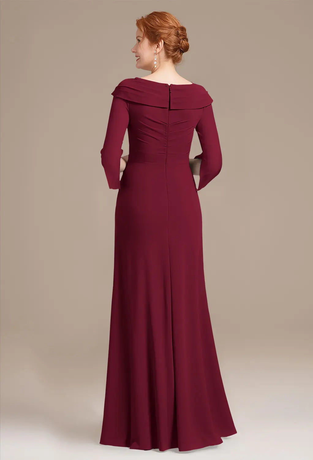 This burgundy dress presents a delicate and atmospheric temperament with a Sheath silhouette. The V-neck and shawl sleeves are designed to embellish the shoulders and neck, and the fabric is draped with pleated and embroidered details. The back pleat design is simple and elegant, suitable for weddings, dinners, and other occasions. It is the high-end styling choice for brides and mothers.
