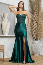 Fashionable Teal Blue Mermaid Strapless Sleeveless Lace Up High-Slit Floor-Length Prom Dress With Applique - Emerald / US 2 / UK 6 / EU 32