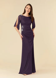 Fashionable Sheath Boat Neck Half Sleeve Sequins Beaded Draped-Back Back Zip Floor-Length Mother of the Bride Dress