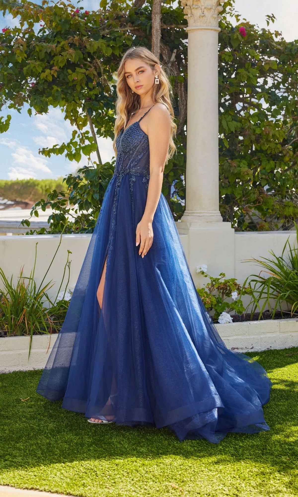 Glamorous A Line Sweetheart Neck Spaghetti Strap Glitter Tulle Floor Length Prom Dresses
