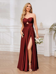 This luxurious and elegant ball gown is crafted from high-gloss satin. The sweetheart neckline and sleeveless design accentuate the neck and shoulders, while the cutout details at the chest add a touch of sexiness. The flowing A-line skirt is graceful and dynamic, and the front slit combines elegance with movement. The adjustable back tie makes it suitable for formal occasions such as balls and banquets, making it the top choice for those seeking quality and a sense of occasion.