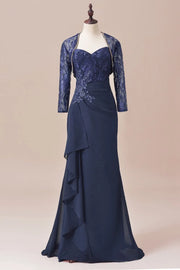 Luxurious Mermaid Sweetheart Neck Lace Jacket Beaded Waist Floor-Length Mother Of The Bride Dresses