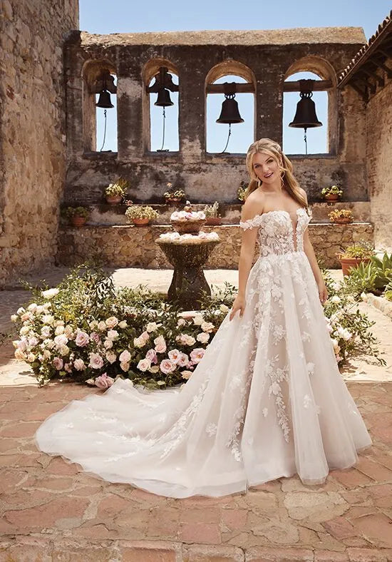 Romantic A-Line Off-The-Shoulder Lace Back Train Wedding Dresses