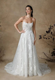 Romantic A-Line Scoop Neck Spaghetti Strap Lace Back Train Wedding Dresses - US 2 / UK 6 / EU 32