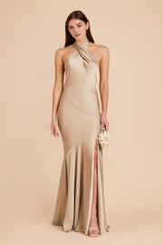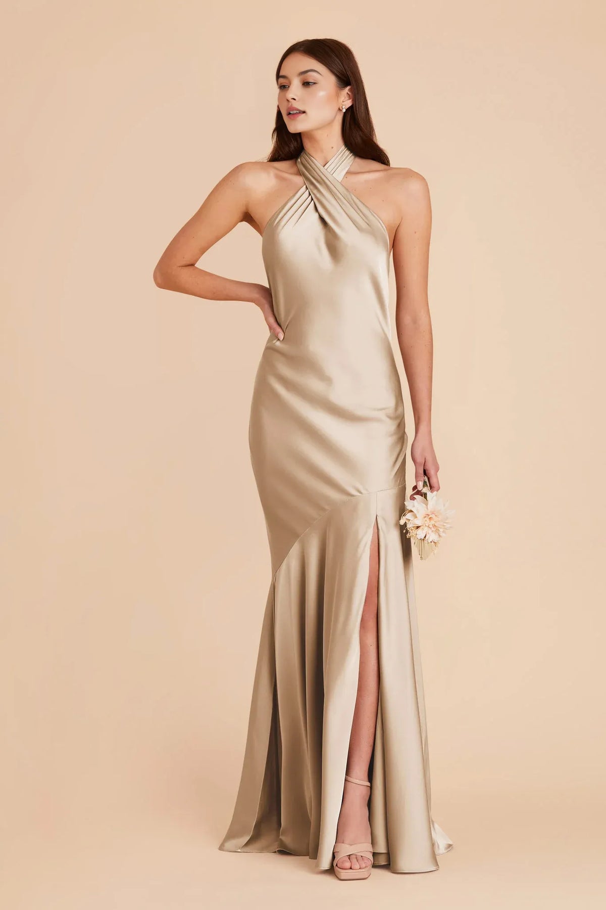 Sexy Mermaid Halter Neck Sleeveless Open-Back Floor-Length Prom Dresses Side Leg Slit - US 2 / UK 6 / EU 32