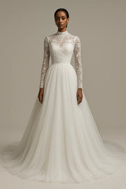 Timeless Ball Gown High Neck Long-Sleeved Lace-Up Back Floor-Length Wedding Dresses